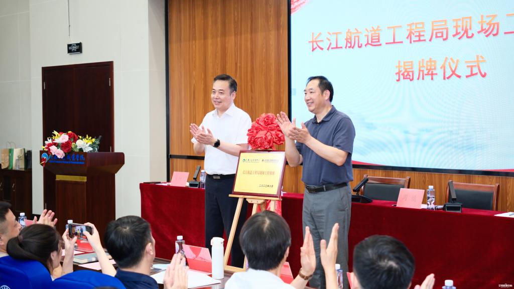长江航道工程局副总经理宁晓东、校长周慎共同为“长江航道局现场工程师班”揭牌。