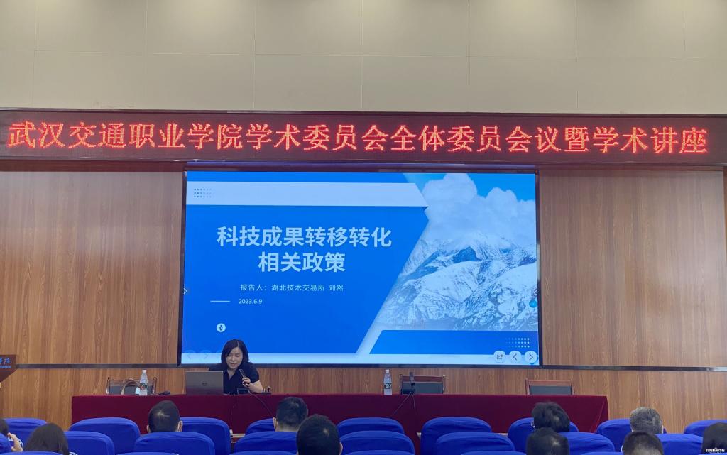 新闻网讯(通讯员 孟玮 蔡昕)为进一步激发学校科技人员创新创造活力,推进科技成果转化,6月9日,学校科学技术协会、职业教育与发展规划研究院举办科技成果转化专题讲座。讲座邀请邀请湖北技术交易所战略规划部主任刘然博士来校作专题报告,学校及二级学院两级学术委员会委员、校科协委员、学校科研骨干教师等相关人员参加报告会,科技与社会服务处处长袁武主持报告会。