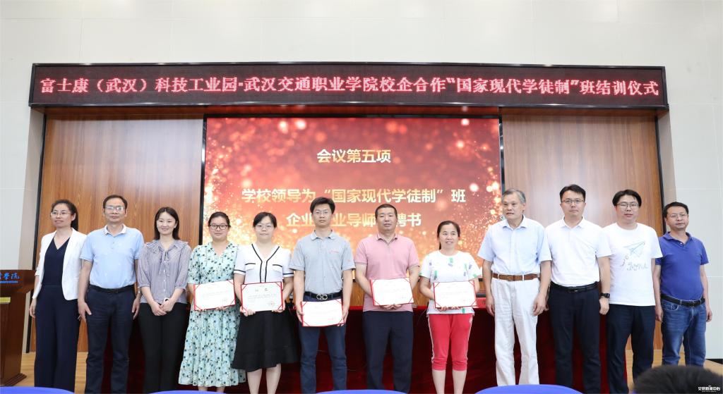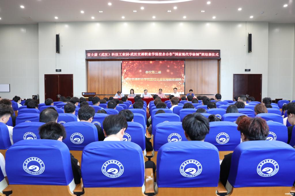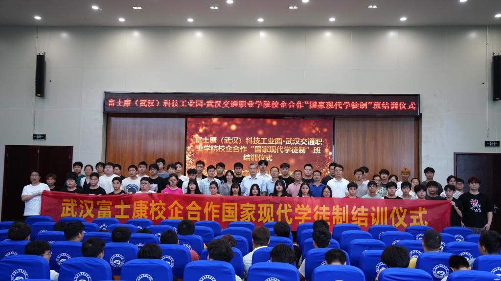 新闻网讯(记者 朱婧)6月2日下午,学校与富士康(武汉)科技工业园(下称“武汉园区”)校企合作“国家现代学徒制”班(下称“订单班”)结训仪式顺利举行,武汉园区研发平台主管阳喜云、张锋、陈健才、赵志勇、杨倩,人资招募主管李森,学校副校长梁世翔,校合作交流处副处长李繁,电子与信息工程学院院长胡迎九、党总支书记黄晶、副院长赵新等出席结训仪式,2021级、2022级订单班全体学生参加仪式。仪式由电子与信息工程学院院长胡迎九主持。