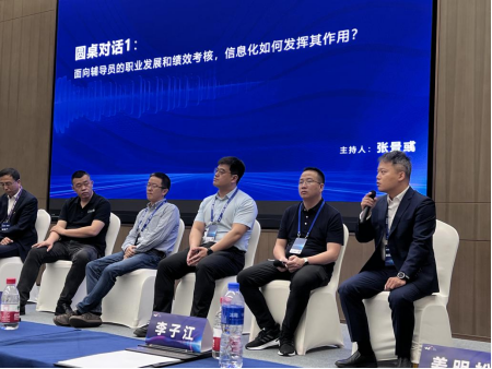 与会嘉宾就面向辅导员职业发展和绩效考核中如何发挥信息化作用、如何通过信息化工具解决学生管理工作中的难题这两个议题展开讨论。姜明松结合我校学生管理工作信息化建设实际情况,分享了辅导员队伍管理经验,指出信息化建对设促进辅导员工作可视化的重要意义,并就其他嘉宾提出的毕业生党团关系转接效率低下、学生医保报销手续繁琐等学生工作管理中的难点,结合我校过往成功经验分享了解决方案。
