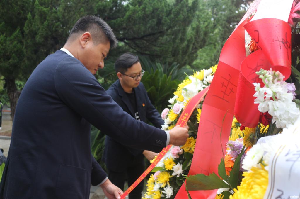 校团委副书记李朝钦和张豪老师向施洋烈士纪念碑敬献花篮。