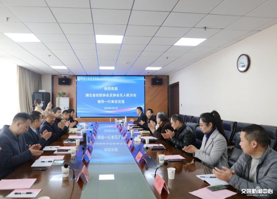 新闻网讯(记者 朱婧)3月1日,湖北省安全技术防范行业协会副会长兼无人机分会会长朱学平、无人机分会秘书长张顺安携理事单位武汉添波科技有限公司、旭日蓝天(武汉)科技有限公司、点点飞创(武汉)科技有限公司、北京金信润天信息技术股份有限公司代表一行来访我校交流调研。学校副校长梁世翔,合作交流处副处长陈安慧,电子与信息工程学院院长胡迎九、副院长沈卫文、赵新及相关专业教师参加交流座谈。