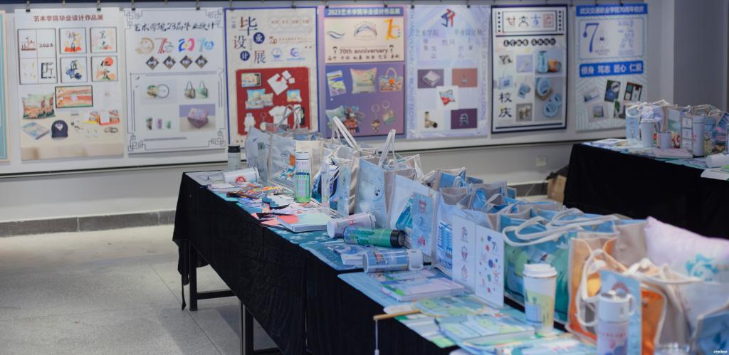 据指导老师朱文凌、徐姗姗介绍,此次广告专业毕业设计作品展以学校校庆70周年为契机,从今年9月起,广告专业的毕业生们就在专业老师的指导下,学习了解学校历史沿革、学校精神和“一训三风”,从校庆70周年标志征集、非物质文化遗产校园风景掐丝珐琅画、品牌形象VI手册设计、校园文化实物礼品衍生品定制等多个方面,精心筹备本次展览。通过打造校园文化的IP形象,全方面展现学校美丽而丰富的校园视觉文化,体现学校特定的精神环境和文化氛围。