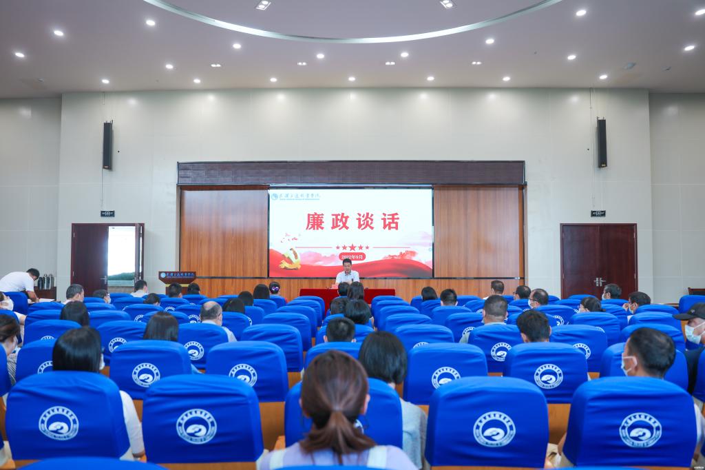 党委书记杨震指出,党风廉政建设是学校各项事业高质量发展的政治引领和政治保障,必须坚定不移推进全面从严治党向纵深发展、向基层延伸。党员干部、年轻干部是学校发展的中坚力量,只有充分认识依法治校、廉洁从政、廉洁从教的重要性,才能真正为学校“两为”人才培养保驾护航,为学校“十四五”改革发展和建设“具有职教本科办学能力的国家‘双高’校”提供坚强政治和纪律保证。