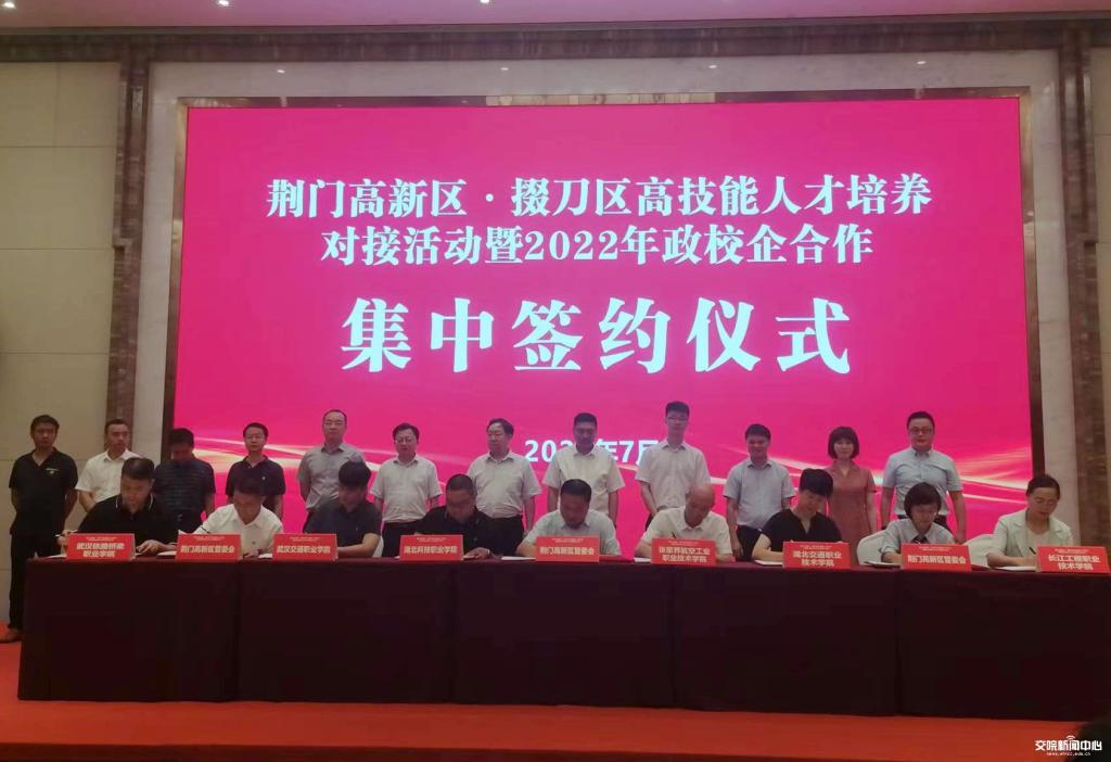 新闻网讯(通讯员 吴雨佳)7月20日上午,我校受邀参加荆门高新区·掇刀区高技能人才培养对接活动暨2022政校企合作集中签约仪式。省内外11所院校以及荆门市掇刀区20家重点企业代表出席签约仪式。我校合作交流处处长王炜、副处长李繁参加了本次签约仪式,学校与荆门市高新区管委会签订了政校合作框架协议。