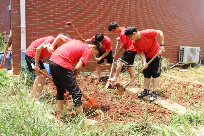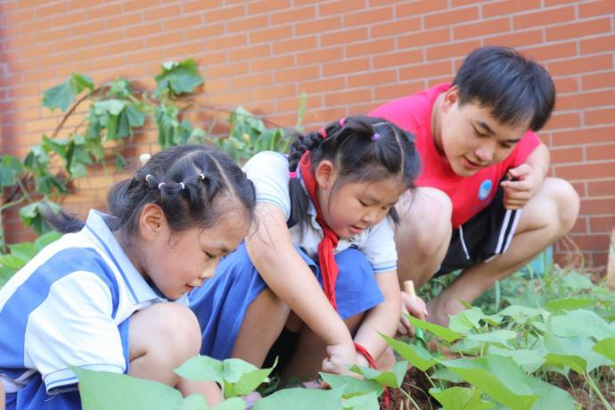 在此次活动开展的前一天,“小候鸟”志愿服务队的小伙伴们为了开辟这块劳动基地下了不少功夫。上网查询各种种植技巧、视频连线有农作经验的爸妈请教耕作注意事项,大家分工合作,清除杂草,翻耕碎土,浇灌水分。志愿队队长赵为哲表示:“我们的动作虽不熟练,天气炎热满脸晒得通红,大家却越干越有劲!因为我们深知自己开辟的不仅仅是一块荒土,更是孩子们播种希望的田地!”