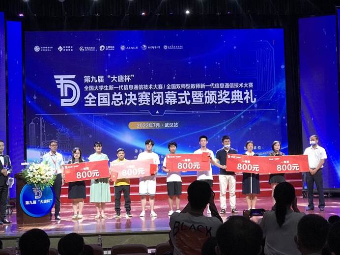 新闻网讯(通讯员 梁娟)7月17日,第九届“大唐杯”全国大学生新一代信息通信技术大赛、全国双师型教师新一代信息通信技术大赛总决赛闭幕式暨颁奖典礼在武汉职业技术学院举行。新葡的京集团8814vip现代通信技术专业路云龙、李忝昊同学荣获高职组一等奖,现代通信技术专业教研室冯琳老师荣获教师赛一等奖。