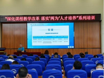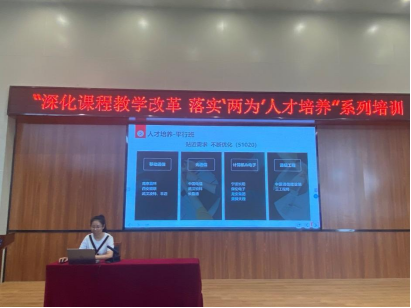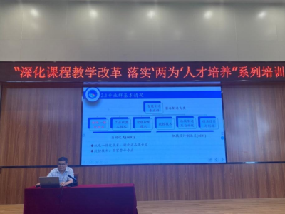 新闻网讯(记者 周璇)6月29至30日,“深化课程教学改革、落实‘两为’人才培养”主题系列培训在明志楼1号会议室进行,培训邀请湖北城市建设职业技术学院王佑华教授、质量管理与评估处处长袁武、物流学院代湘荣教授、艺术学院国赛获奖教师团队倪琼、周敏、肖潇等校内外专家做专题讲座,各二级学院教学副院长分享重点专业人才培养方案制定经验。副校长姬中英、各二级学院中层干部、教研室主任、全体校内遴选教师参加学习。