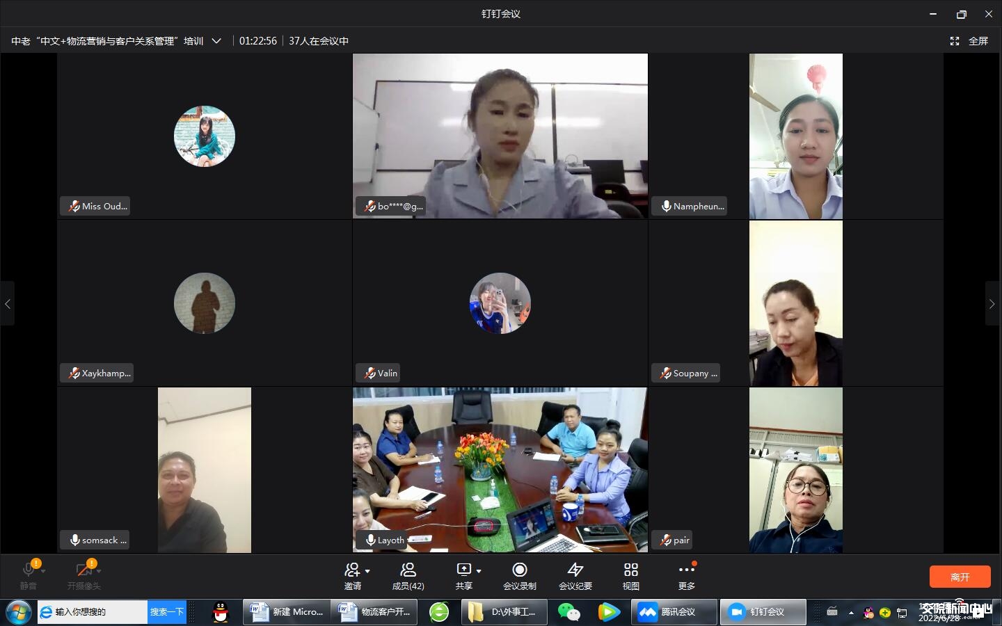 新闻网讯(通讯员 康玲)6月29日,我校与老挝巴巴萨技术学院等8所职业院校“中文+国际物流服务”线上教师培训结业仪式在图书馆8号会议室举行。我校外事处处长、国际丝路学院院长杨昌蓉,物流学院院长杨晋,巴巴萨技术学院国际教育与合作中心主任尤卫出席结业仪式。仪式由我校外事处处长、国际丝路学院院长杨昌蓉主持,佔吧沙省职业技术学院国际教育老挝-汉语交流与培训中心分院院长宋賽教授担任翻译。我校培训老师陈香莲、丁立群与老挝巴巴萨技术学院等8所职业院校师生代表参加了结业仪式。