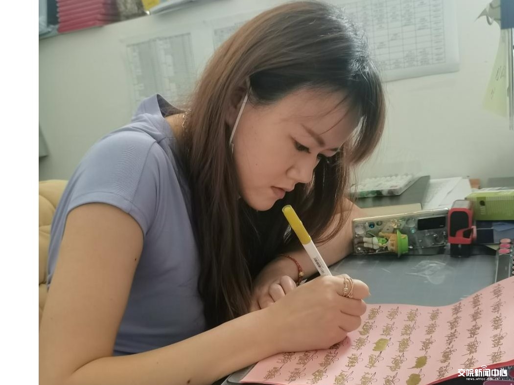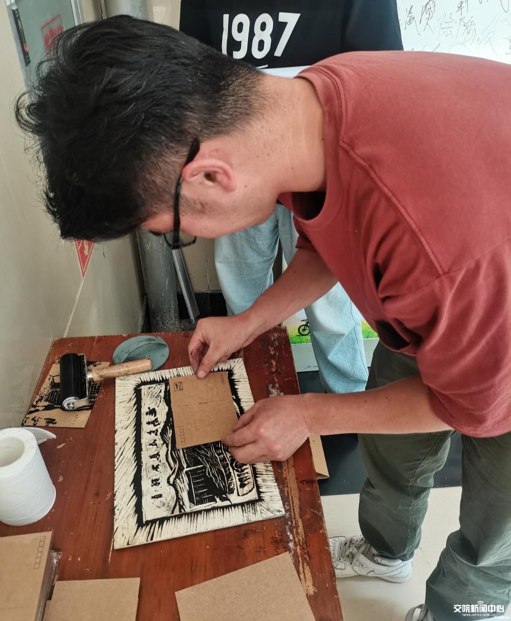 高悦老师担任2019级计算机应用技术专业、物联网应用技术专业及智能交通专业5个班251名学生的辅导员。学生们陆续离校实习,高悦心里空落落的。5月他开始着手在业余时间为学生们准备毕业礼物,他以学校“水韵”精神、“自强不息、明志高远”校训、“执着奋斗、不负韶华”等毕业寄语为元素,DIY帆布包上的图案,并采用刻板画的方式将新葡美景刻画在木板上,再用黑色水墨拓印在明信片上,3天2夜时间拓印出700余张明信片,期间因油墨没有密封好出现结块,高悦徒手捏碎结块,双手被油墨全部染黑,久久没有洗刷掉。谈及为何不直接在网上定制而要自己亲自设计制作这份毕业礼物时,高悦笑着说:“这当然不一样呀,我是学设计专业的,就想利用自己的专长,给弟弟妹妹们送上一份特殊的祝福。”