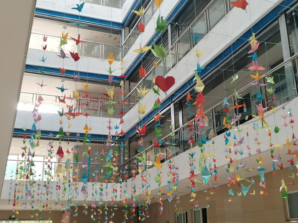 “翅膀这边要往上系”“绳子中间加固一下”……辅导员梅慧老师与学生干部们正忙碌着折纸鹤,电子学院师生2天2夜折出1800余只千纸鹤,挂满明德楼大厅,“一帆风顺”“前程似锦”“天高翱翔”“工作顺利”“常回来看看”……纸鹤里载着美好的祝福“飞”向毕业学子手中。