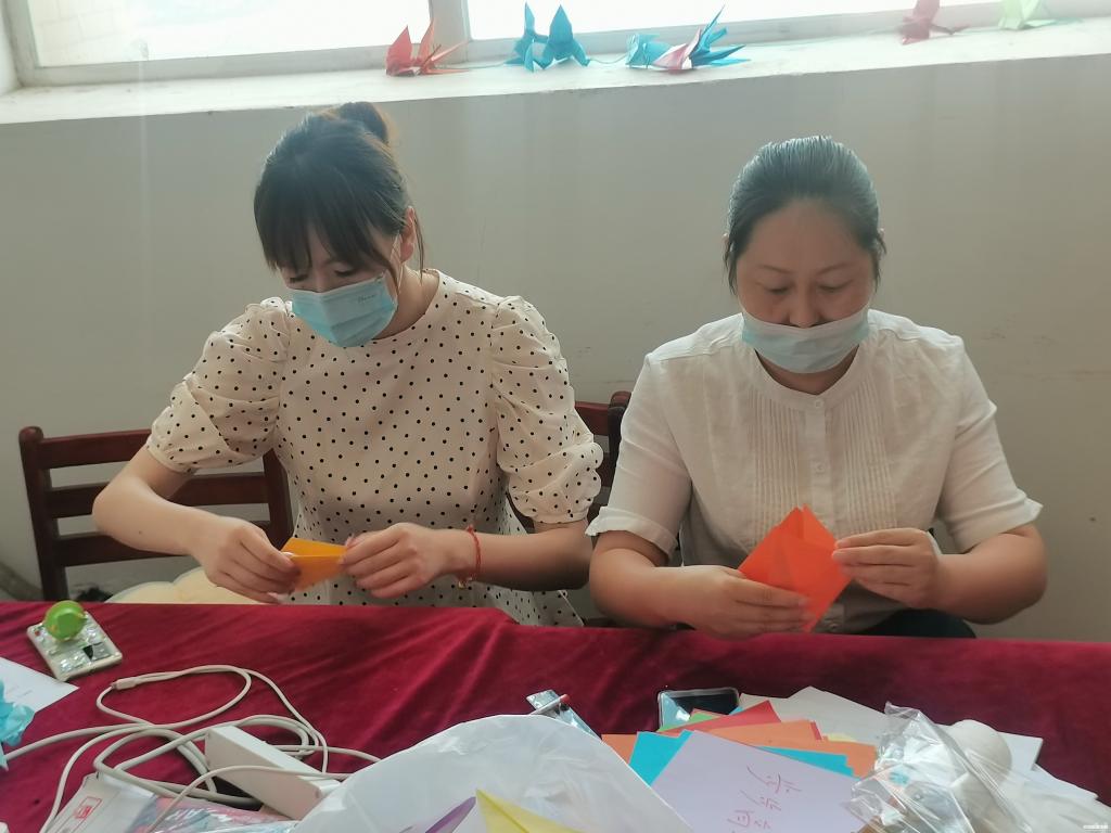 肖萌老师(左一)梅慧老师(左二)折纸鹤