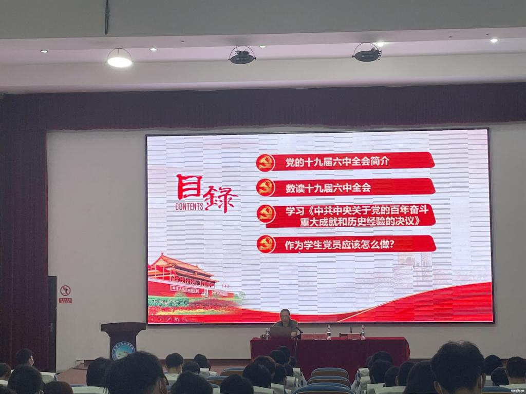 校长周慎以“党的十九届六中全会精神解读”为主题,从五个方面详细阐述了党的十九届六中全会的重要意义,系统讲解了《中共中央关于党的百年奋斗 重大成就和历史经验的决议》。最后,周慎校长结合新实施的职教法、基本国情、校情,从实际出发,对学员们如何争做合格共产党员提出具体要求。校长周慎鼓励学员们要努力成为“为党守初心、为国担使命”德智体美劳全面发展的高素质技术技能人才。