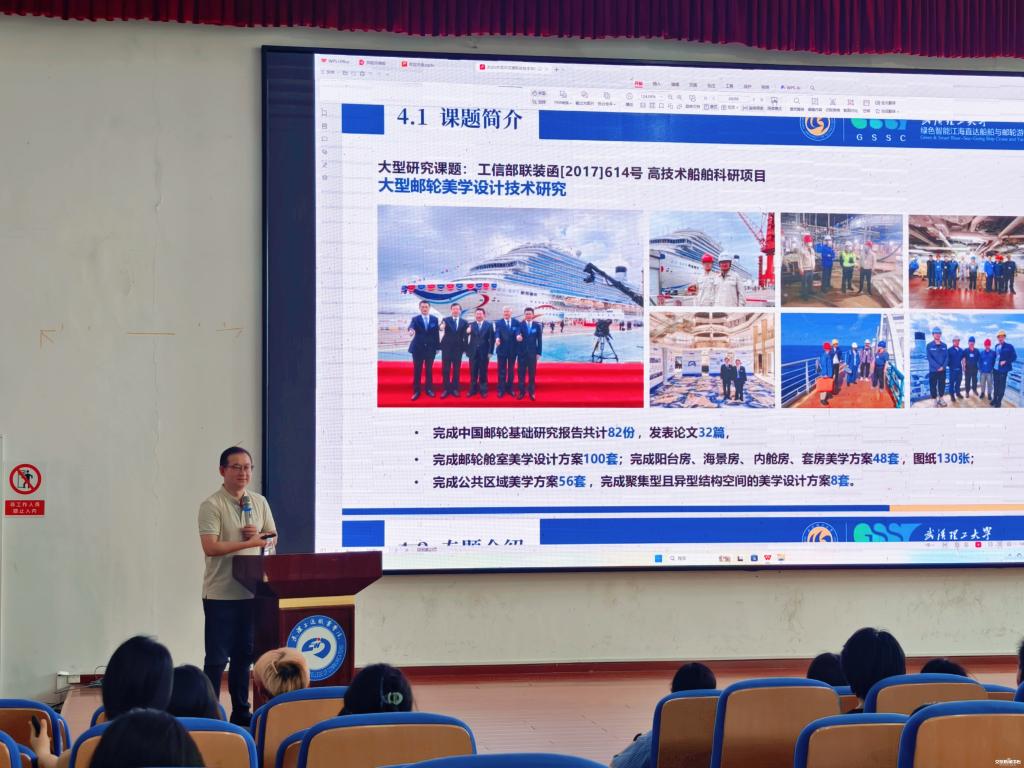 新闻网讯(记者 杨斗 通讯员 金畅)近日,艺术学院在明德楼223报告厅成功举办“国产邮轮工程:打造海上高技术高质量的艺术产品”专题讲座。活动特邀武汉理工大学绿色智能江海直达船舶与邮轮游艇研究中心副教授徐俊辉担任主讲,吸引了学院众多师生代表参与。本次讲座由艺术学院院长尚洁主持。
