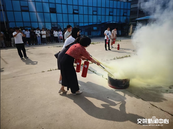 安全知识基础培训环节,通过案例讲解、数据分析,针对高校常见问题和安全隐患,从应急处置组织、疏散规范流程、逃生自救要点等图文并茂进行讲解;灭火实操演练环节,参演师生在保卫处工作人员指导下,按规范动作使用灭火器扑灭明火的实操演练。演练中,盆火和烈日映照着师生脸上的汗水,但掩饰不住师生的参训热情,三个学院带队老师表示,集中轮训为各自学院安全教育提供了规范标准,下了功夫,上了强度,见了实效。