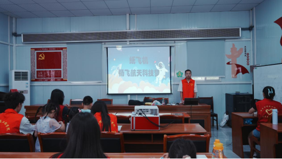 志愿者陈鑫将载人航天、探月工程、火星探测等领域的辉煌成就,用生动的语言,结合趣味实践与互动体验,给孩子们娓娓道来,在他们心中播撒下航天梦想的种子。