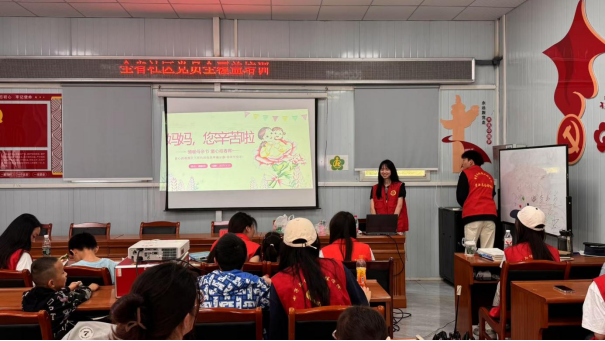 志愿者姚昭雯化身“故事老师”,通过精心准备的图文课件,用通俗易懂、生动有趣的语言,向小朋友们讲述母亲节的起源、意义以及各国庆祝母亲节的方式。