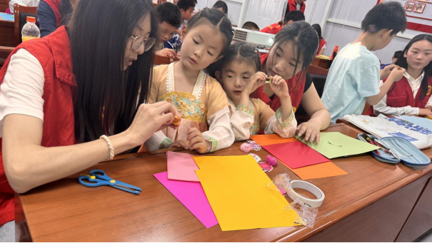 小朋友们充分发挥想象力和创造力,有的用彩笔绘制出与妈妈温馨相处的场景,有的剪出爱心、花朵等形状来装饰贺卡。在志愿者和同伴的帮助下,一张张充满童趣与爱意的贺卡逐渐成型。