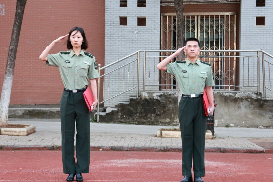 学员代表郝楠、李嘉琪在国旗下发表“传承五四薪火,奋进强军征程”主题演讲。