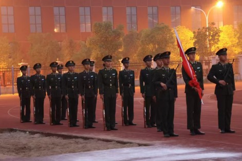 “逐梦启新英才至,披荆斩棘绽华光。”升旗仪式让爱国主义扎根学员心间,厚植热爱国防、投身国防的校园风尚。