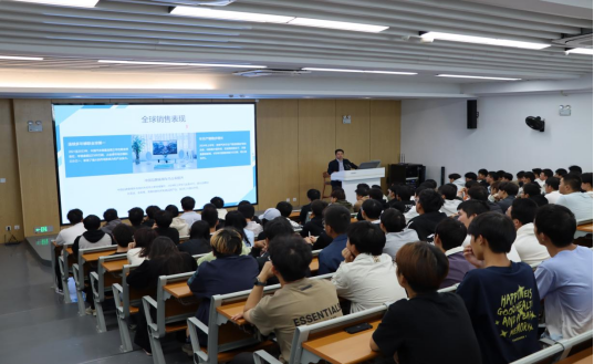 陈金从汽车行业销售状况概览、行业发展趋势、专业方向与就业前景、学习规划建议及课余时间利用策略五个方面给学生带来一场别开生面的生动演讲。他从汽车行业的发展现状出发,以帮助学生明晰职业方向导向,详细介绍了汽车检测与维修技术专业、新能源汽车专业及汽车营销专业的行业前景与趋势,并从基础知识学习、专业技能提升和综合素质培养三个方面鼓励在校生利用在校时间积累经验,及早进行职业规划,为将来的实习就业做好准备。