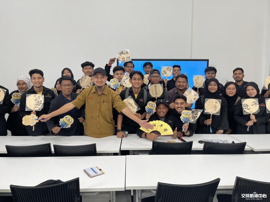 “团扇是我们中华民族的传统工艺品,具有团圆、好运等寓意,希望我们友谊长存。”宣讲团队员将精心准备的团扇送给马来西亚师生作为临别祝福。