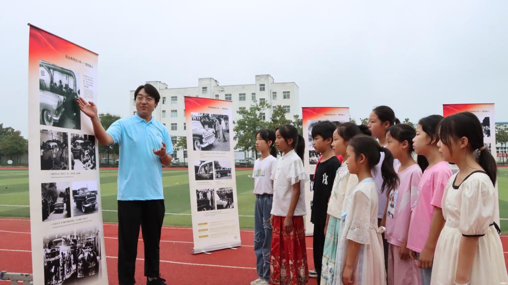 新闻网讯(通讯员 马琼)让历史告诉未来,让技术享誉世界。“自1958年首次成功制造出红旗牌高级轿车以来,红旗车不仅成为了我国汽车高端品牌的代表,还见证了中国汽车工业的成长。红旗车的诞生背景与国家的发展需求紧密相连,体现了中国人民自力更生、艰苦奋斗的精神。红旗车的诞生,标志着中国汽车工业的起步和发展。”7月12日,在湖北省天门市拖市镇中心小学的暑期学堂中,汽车学院志愿者们带来的国产汽车品牌展上,志愿者小于老师绘声绘色地跟小朋友们介绍着国产汽车品牌的发展历程。