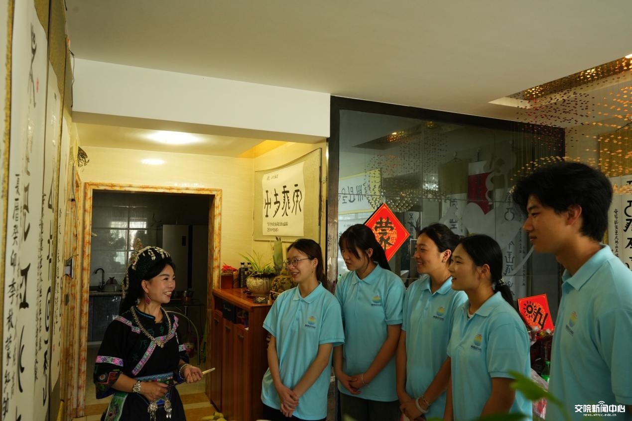 新闻网讯(通讯员 朱磊 章书玉)7月8日,新葡的京集团8814vip“匀汉连心 共筑华夏”大学生暑期社会实践团来到贵州都匀水书非物质文化遗产传承人蒙跃群老师家中,学写水族文字,体验水族文化。