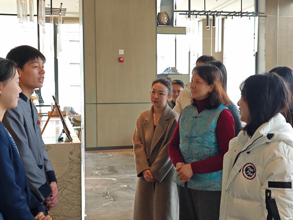 新闻网讯(记者 郑广东)12月28日,交通服务与管理学院副院长陈安慧、郑斯楣,以及酒店管理与邮轮管理教研室专任教师和毕业班辅导员一行8人,前往武汉光谷万豪酒店探望实习学生,同时对酒店管理专业的就业未来进行深入探讨。此次活动得到了大中华酒店工程师协会副会长杨骏和光谷万豪总经理蔡经理的热情参与。