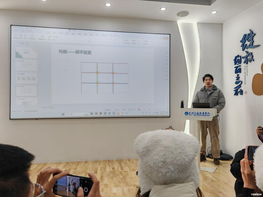 新闻网讯(记者 郑广东)12月23日,交通服务与管理学院新媒体全体成员在水韵讲堂开展了一场媒体技能培训活动。这次活动的主讲人是交通服务与管理学院的宣传专员郑广东老师,他以丰富的经验和专业的知识,为在场的40余名新媒体成员讲解了稿件撰写、图片拍摄、图片后期等技能。