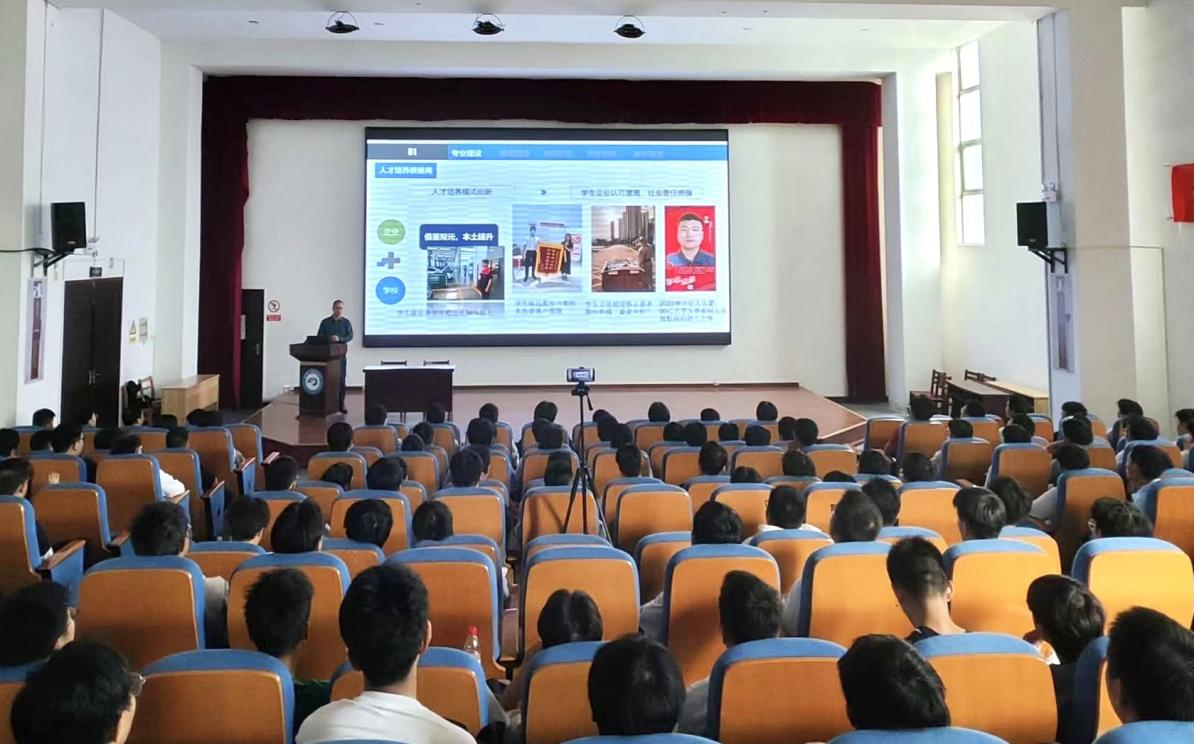 会议伊始,谢计红院长首先从性别比例、地域分布、出生年月和政治面貌等方面对2023级新生进行整体介绍,用生动形象的讲解拉近同学间的距离,鼓励新生增进交流;接着,谢院长又详细介绍了学院专业发展历程,对人才培养、实习基地、师资队伍、学生竞赛和教学管理等内容进行详细解读,进一步加深了新生对学院的归属感和对专业的认同感;最后,谢院长深切寄语新同学,希望他们树立明确的大学目标,秉持“自强不息,明志高远”的校训精神,以奋斗之姿实现青春梦想,成为全面发展的新时代高素质技术技能型人才。