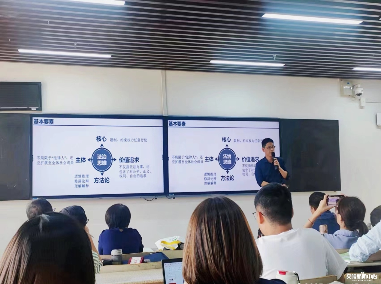 活动伊始,张梦奇老师和史波老师针对“德法课”第六章重点内容“培养社会主义法治思维”,分别进行了教学展示。“德法课”法治部分专业性较强、教学难度比较大,张梦奇老师活用案例教学法,通过列举陆勇案、资溪在建房强拆事件、“指鼠为鸭”事件、“北极鲇鱼”事件、昆山龙哥案、上海民警“教科书式执法”等案例,对课程知识点“法治思维及其内涵”“法治思维的基本内容”进行了讲解,内容丰富,案例鲜活。史波老师则从习近平总书记在首都各界纪念现行宪法公布施行30周年大会上的重要讲话导入课堂,紧扣教学内容,注重师生互动,通过精心设计的一系列问题,如“老人跌倒,扶还是不扶?”“女朋友和妈妈同时掉进水里,先救谁?”“迟来的正义还是正义吗?”等,围绕教学要点,启发学生思考,讲清楚法治思维的四层含义与五部分内容,政治性、学理性突出。