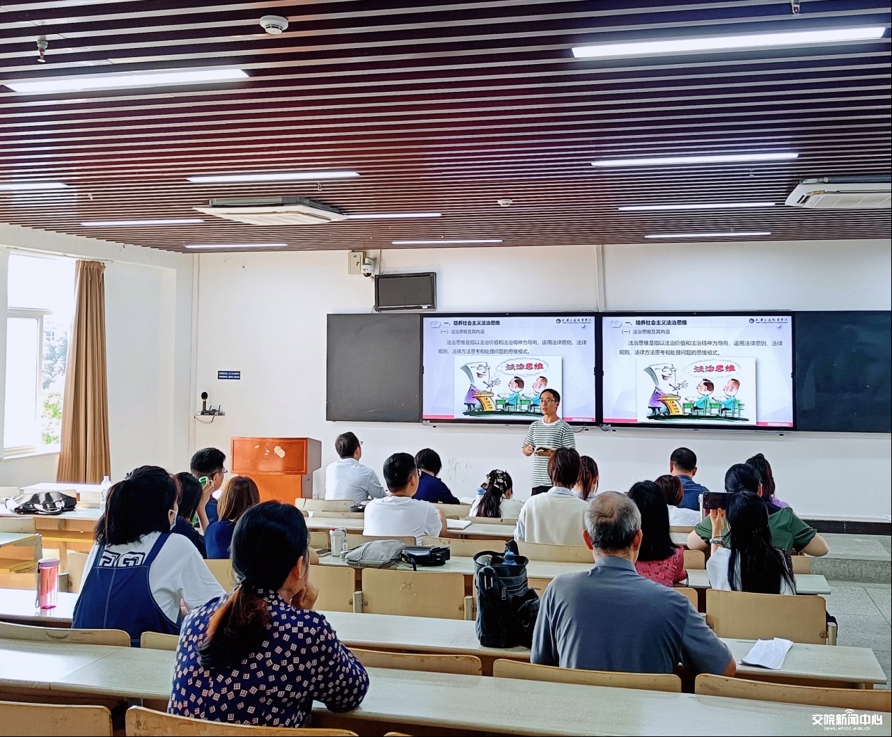 新闻网讯(通讯员 谌雷元)为促进教师专业成长,着力破解《思想道德与法治》课程教学难点堵点,努力提高思政课教学质量,马克思主义学院10月17日下午组织开展了2023年秋季学期《思想道德与法治》课程“青年教师骨干教师同讲一堂课”教研活动。活动由院长潘峻岭主持,全体思政课教师参加。