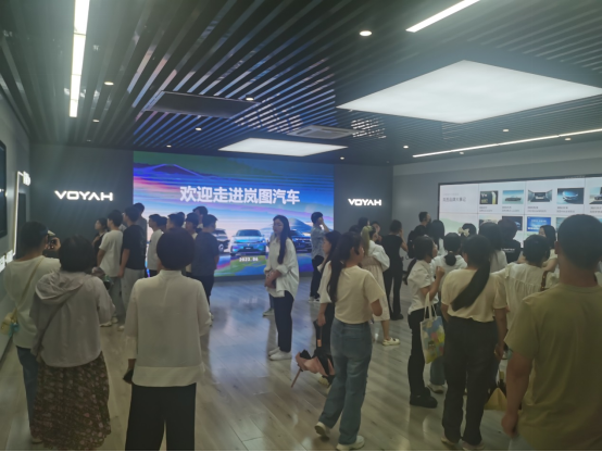 岚图学院校长陈锐带领师生们参观了岚图汽车总部厂房,介绍了公司的发展历程、公司特色等。公司营销板块的HRBP肖舒带领师生先后参观了岚图汽车武汉龙阳大道全功能交付中心和江宸天街4s店,在全功能交付中心参观的过程中,店内销售经理向同学们详细的介绍了店内岗位设置、招聘需求和运作流程,同学们对门店的工作要求及服务模式都有了更加深入的了解。