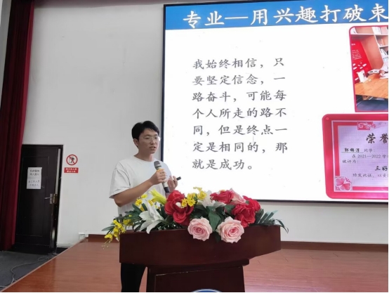 在专业道路上愈走愈远的中国地质大学(武汉)准研究生倪享、成功升入湖北第二师范学院的学霸谢晓凡、武警湖北总队退役学生陈龙、连续两年专业成绩名列前茅并获得省赛一等奖的学生郭锦淳、优秀学生干部严鹏杰、带领班级连续两年获得红旗团支部的团支书别梦婷、投身于青年志愿服务做到微光成炬的王子睿,这些学生分享着自己的成长故事,在场学生反响热烈,掌声不断。