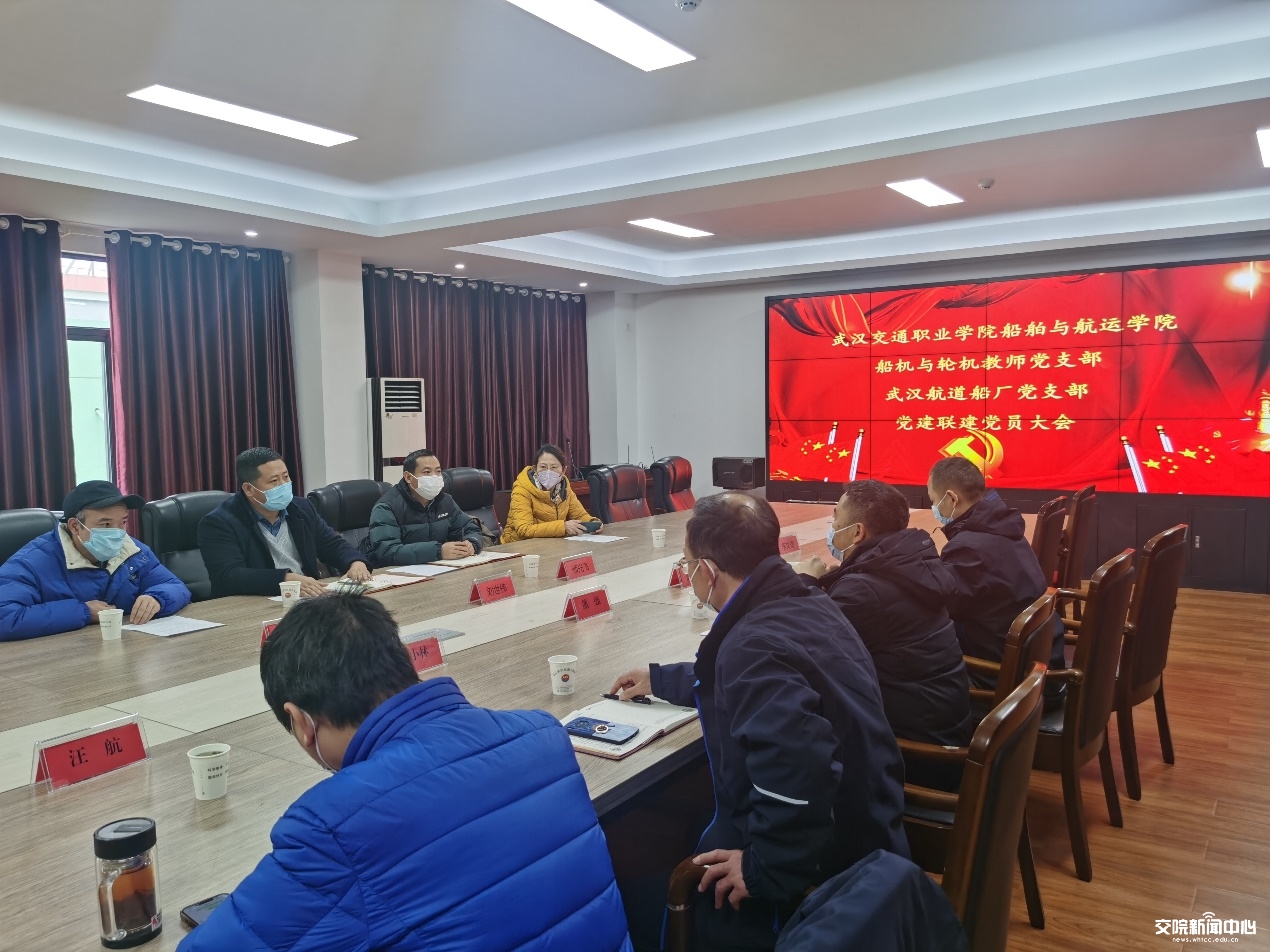 新闻网讯(通讯员 师光飞)12月15日下午,船舶与航运学院船舶与轮机教师党支部书记师光飞代表党支部协同学院副院长刘世伟,马克思主义学院思想导师张晓丽、张前进前往武汉航道船厂做“党建+校企合作,协同共育‘两为’人才”为主题的党建交流活动以及党的二十大会议精神解读专题讲座。会议由武汉航道船厂党支部书记熊强主持,武汉航道船厂采购部部长陈卫海,成本管理部部长陈小林,项目经理陈飞,质检部部长汪航、李文琦,人事部门张瑞瑞等参加了会议。