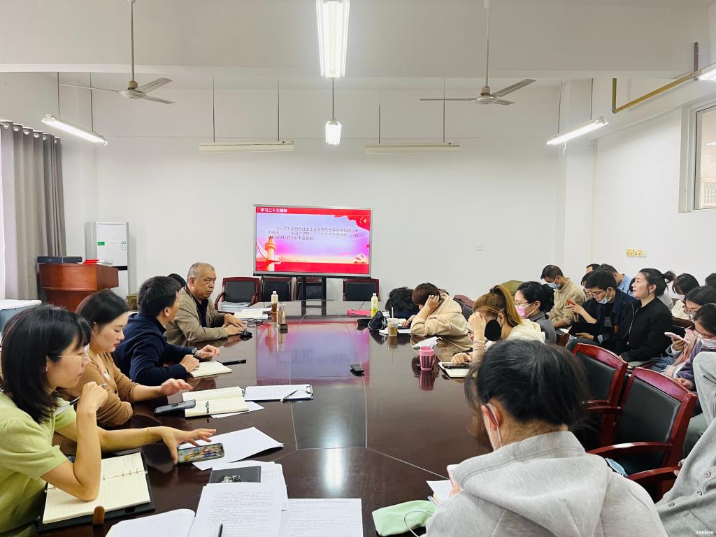 党总支书记阮锋就如何迅速掀起学习党的二十大精神热潮做出下一阶段工作安排。他说:“党的二十大精神博大精深、内涵丰富,结合这次‘学习二十大精神,谈艺术学院高质量发展’活动,按照学校学习宣传贯彻党的二十大精神部署要求,学院将进一步结合专业特点,围绕艺术创作精神,利用课堂、工作室、非遗文化活动等平台载体持续深入宣传党的二十大精神,进一步营造浓厚氛围。各教研室要及时把党的二十大报告中的最新理论成果融入课程中去,切实推进党的二十大精神进教材、进课堂、进头脑,及时将党的二十大精神传达到广大党员干部,传达到每个师生,使之转化为师生奋发有为、积极作为的强大动能,进而转化为学院在十四五阶段高质量发展的蓬勃力量。”