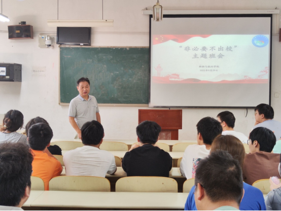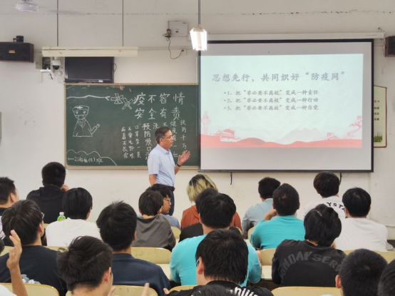 21船舶(4)班职业导师院长徐得志给同学们讲解疫情防控的要求,希望大家严格落实各项制度,在日常防控管理工作中,切实落实核酸检测和因病缺课登记制度,思想先行,共同织好“防疫网”;同时国庆假期即将来临,同学们要做到身心休息,思想不放假,非必要不离校不离汉,严格履行请销假手续,做好个人防护。
