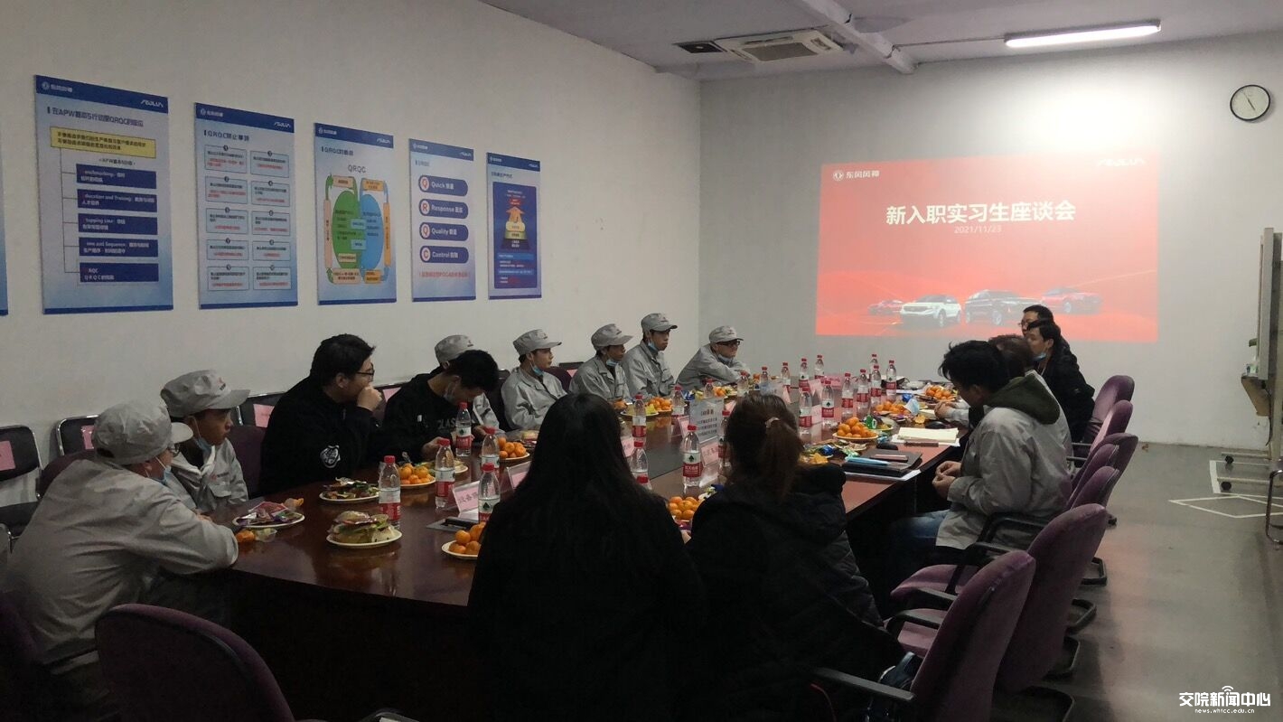 东风乘用车公司的会议室,老师们与实习生代表们深入交谈,仔细了解他们的工作情况、食宿问题和实习感受学校老师传达了学校领导对学生的关心和期望,对同学们吃苦耐劳的精神表示充分的肯定,同时要求同学们在实习期间认真向企业指导师傅学习,踏实工作,注重团队协作,遵守企业规章制度,不断提高实践能力,为将来走上工作岗位打好基础;同时叮嘱同学们在实习期间要注意人身安全,加强与学校、家长沟通和联系,圆满完成实习任务。