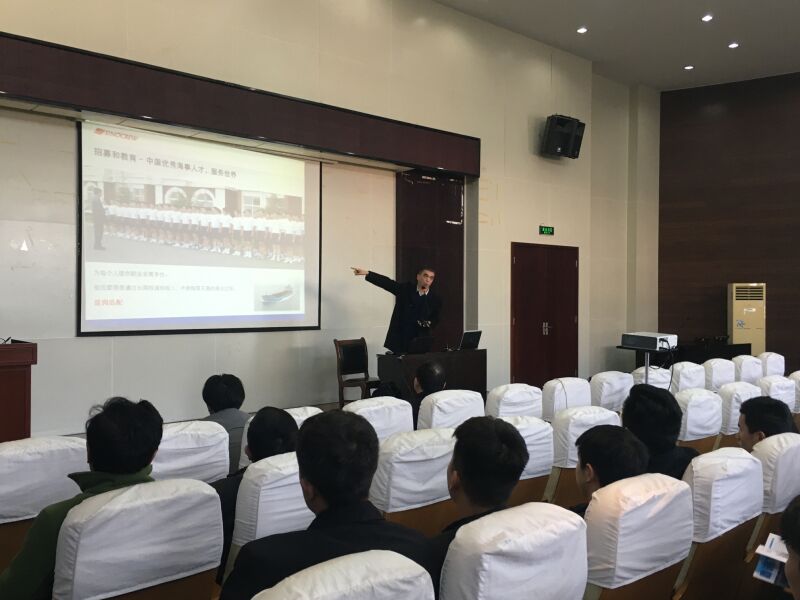 上午,校企双方举行了座谈会,就现阶段具体合作事宜进行了商议,描绘了未来进一步深化合作前景,并广泛达成一致。会上,双方确定了挑选订单班学员的具体方案。中午,鑫裕盛公司在行政楼会议室举行了宣讲会,航海学院、电子学院等百余名学生参加。首先,总经理梁详细介绍了集团的发展历史、运营状况及员工结构等。随后,与学生进行了互动,对学生提出的职业发展、培训形式等问题给与了详细解答。下午,公司对有意加入订单班的学生进行了小组淘汰面试,初步确定了订单班学生名单,后续相关培训也即将展开。