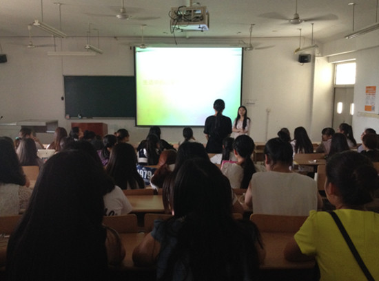 (张丽曼)5月14日下午,旅商学院心理健康技能培训在南楼301教室拉开帷幕。此次培训由学校大学生心理健康教育中心的李思晴老师担任主讲,参训人员为学院2013、2014级各班心理委员及寝室心理气象员共百余人。