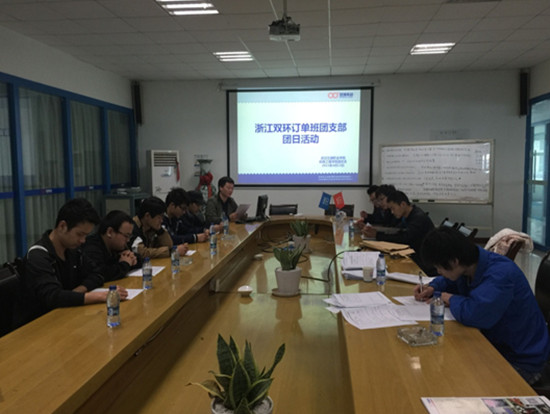 4月13日,“浙江双环”订单班团支部在浙江双环传动股份有限公司会议室开展学习全国两会精神的团日活动,活动由机电工程学院团总支书记阮锋老师主持,学院26名实习生全体参与。