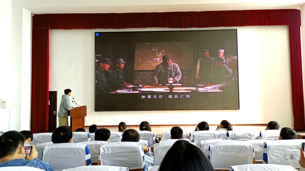 “宁愿死不退让,宁愿死不投降,中国不会亡......”新葡的京集团8814vip21级富士康(1)班的张燃同学用一场配音还原了《八佰》中谢晋元副团长接到“死守上海最后阵地的命令”后,奉命死守苏州河北岸的四行仓库,阻击日军进攻,掩护主力后撤,官兵们抱定了必死的信念,写下遗书,誓与日军决一死战,悲壮宣誓的场景,铿锵有力、掷地有声的誓词将现场引向高潮。