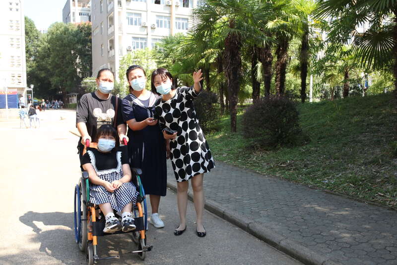 每天下课的时候,同学们推着坐在轮椅上的汤紫妍,一路说说笑笑,有时将她送到宿舍,有时将她送到食堂门口,她的母亲会在门口等着。“阿姨,下课的时间点人太多了,您去了也不一定找得到我们,以后由我们来送紫妍下课。”同学们对汤紫妍的母亲说。