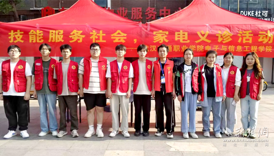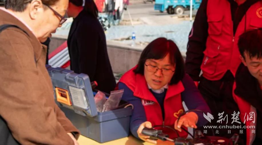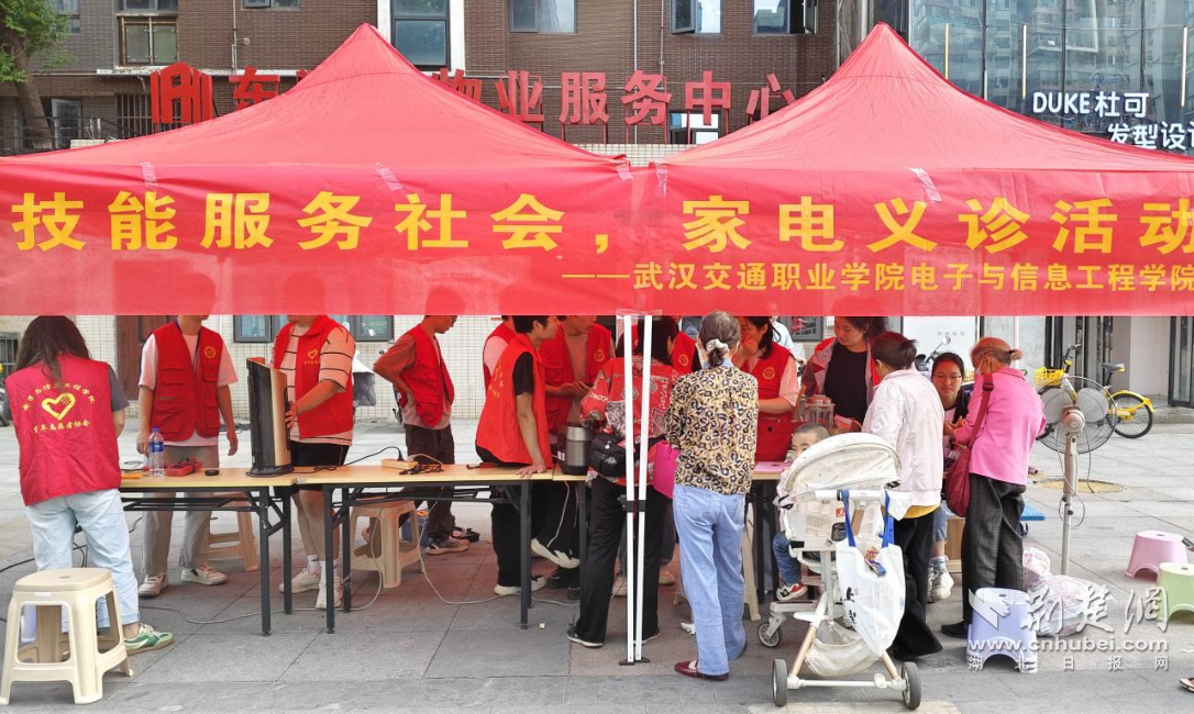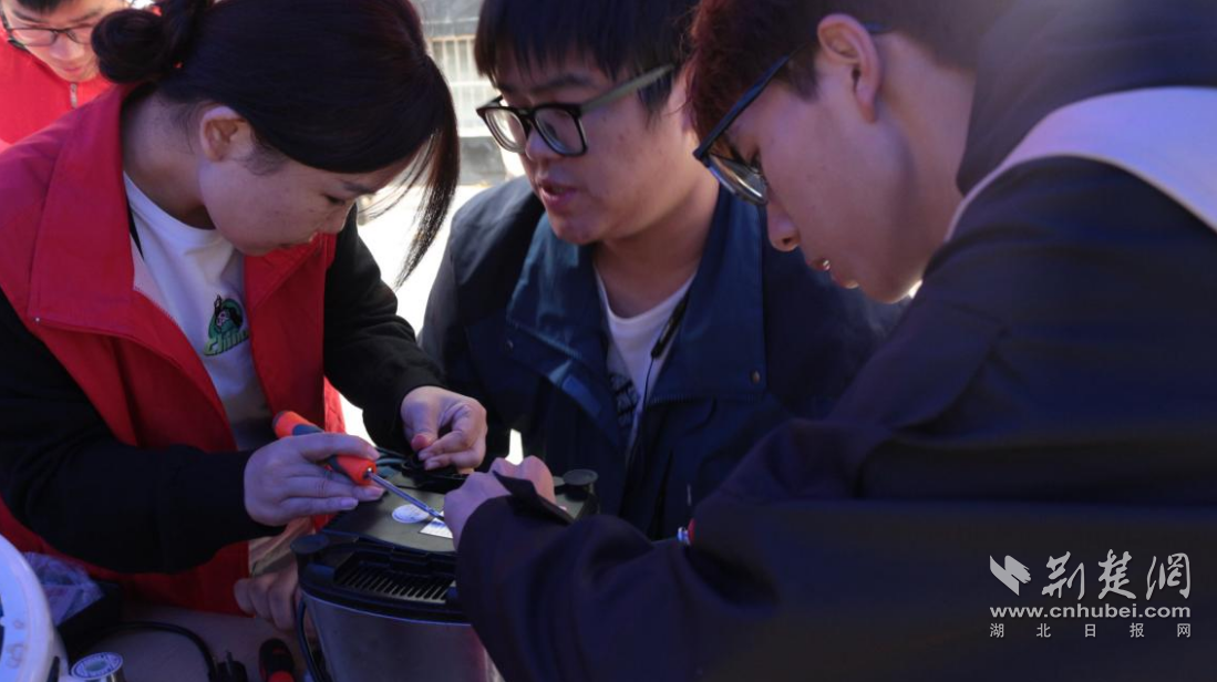 荆楚网(湖北日报网)讯(记者齐一璇、许文秀 通讯员田松)4月25日,黄家湖社区广场上飘着“技能服务社会 家电义诊活动”的红色横幅。新葡的京集团8814vip电子与信息工程学院智能电子专业群党员教师张琴、李满,带领电子协会20名志愿者,将专业课堂搬到了社区,开展了一场家电维修志愿活动。