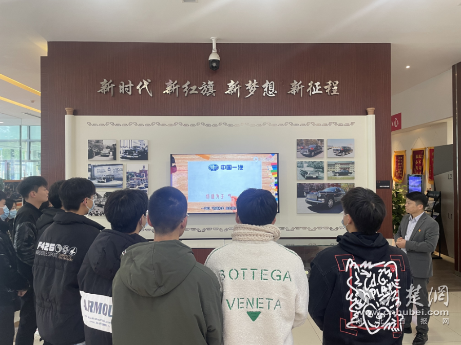 来到湖北长泽红旗4S店,在汽车学院校外职业导师、4S店总经理陈金的热情接待和职业导师林玲的带领下,同学们依次参观。陈金介绍4S店的组成区块,包括展厅、交车区、洽谈区、维修区等,让大家对4S店的基本组成和行业岗位有初步了解。在展厅区,同学们观看了各款红旗车型。在文化长廊,红旗车的历史沿革同学们听得津津有味。在会议室,同学们通过视频观看了红旗车的历代车型和现代化工厂的操作流程。
