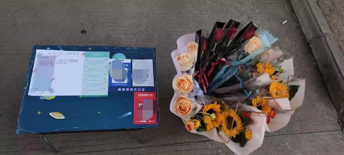 这些天,汤紫妍有时候会拿个小板凳坐在小桌子旁售卖,只是静静坐着或站着。更多的时候,小摊是没人值守的,采用“自助”售卖模式,完全看买者意愿。“同学们都很诚信,卖出去的鲜花数量和收到的账款没有差额,相互信任是一件很棒的事情,让我觉得很温暖。”汤紫妍说。