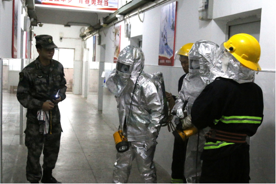 队员们迅速穿戴防护服,携带灭火器、担架等装备,奔赴各自岗位。